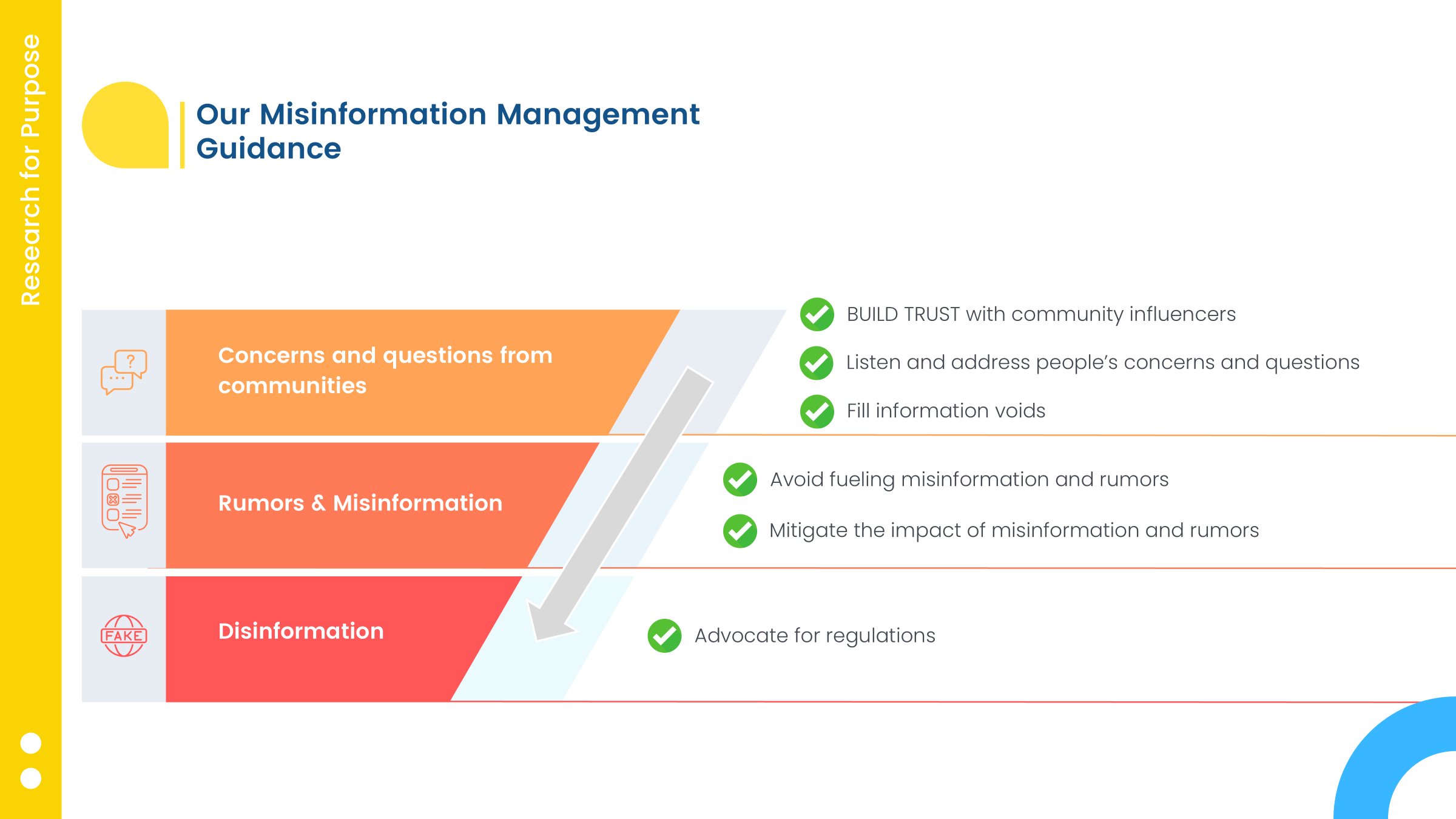 Not all misinformation is equally harmful, and not all requires correction. Often, the more strategic response is to understand the underlying concern: Is it fear? Frustration? Lack of access? Listening deeply to these signals can reveal gaps in service delivery, engagement, or trust.